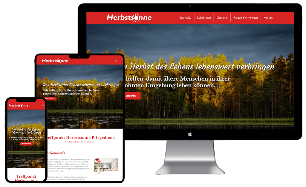 Der Pflegedienst Herbstsonne wurde 2008 gegründet und ist mittlerweile mit über 65 Mitarbeitern der größte private Pflegedienst in den Landkreisen Altötting - Mühldorf. Die vertrauensvolle Zusammenarbeit mit den Menschen ist eine der wichtigsten Grundlagen Ihres Erfolges. Diese Werte durften wir auch bei der Erstellung der neuen Webseite mit einfließen lassen.