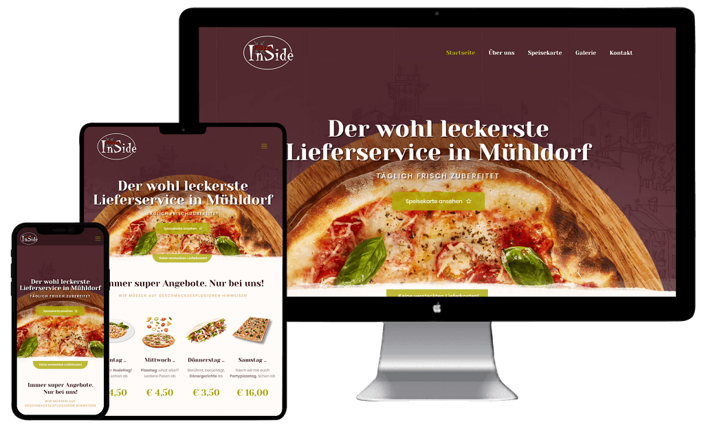Für das Pizza InSide in Mühldorf haben wir einen Relaunch der bestehenden Webseite durchgeführt. Die neue Internetpräsenz sollte modern wirken und zum Bestellen animieren. Neben der Suchmaschinenoptimierung, die vor allem bei Gastronomiebetrieben lokal sehr wichtig ist, wurden gleichzeitig Marketingmaßnahmen besprochen, wie man mit Online Marketing mehr Kunden auf sich aufmerksam machen kann. Social Media Marketing und die richtige Vorgehensweise auf Google, waren einige Instrumente um mehr Umsatz zu generieren.